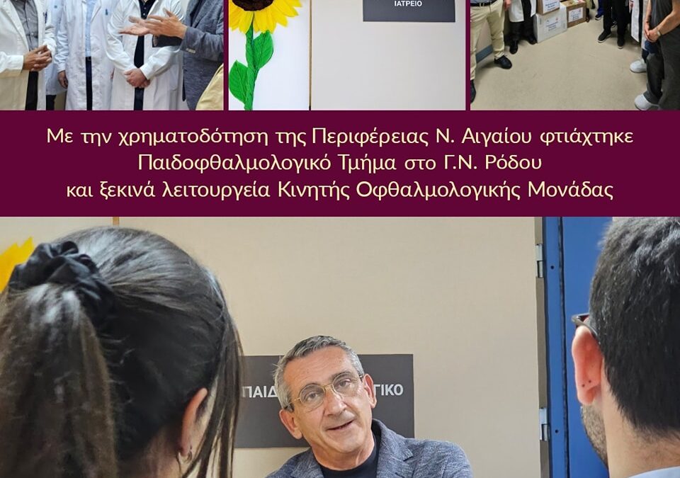 Το πρώτο από καταβολής του, Παιδοφθαλμολογικό Ιατρείο αποκτά το Νοσοκομείο της Ρόδου, με χρηματοδότηση από την Περιφέρεια Νοτίου Αιγαίου